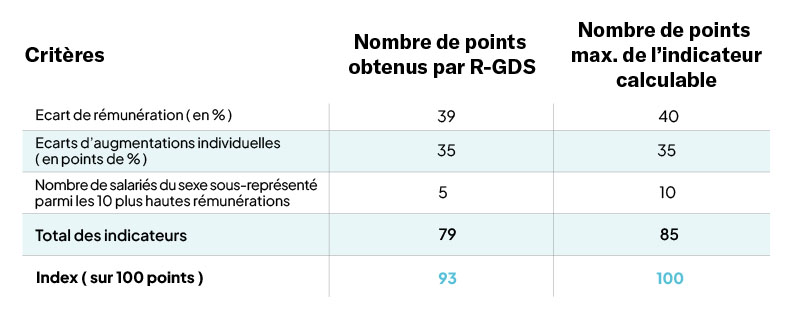 Au premier rang de nos engagements figure l’égalité hommes-femmes au travail, qui fait l’objet d’un suivi annuel conformément aux dispositions de la loi sur l’égalité professionnelle. Vous pouvez consulter le tableau récapitulatif de l’indice ci-dessous.